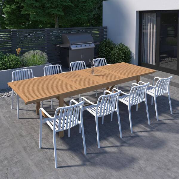 Takamaka 9-Piece Teak Finish Wood 100% FSC Rectangular Patio Dining Set White