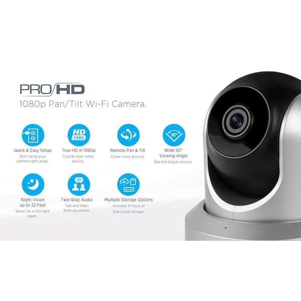 ProHD 1080p Wi-Fi Wireless IP Security Camera 1920TVL, Pan/Tilt, Night Vision, 2-Way Audio, Silver