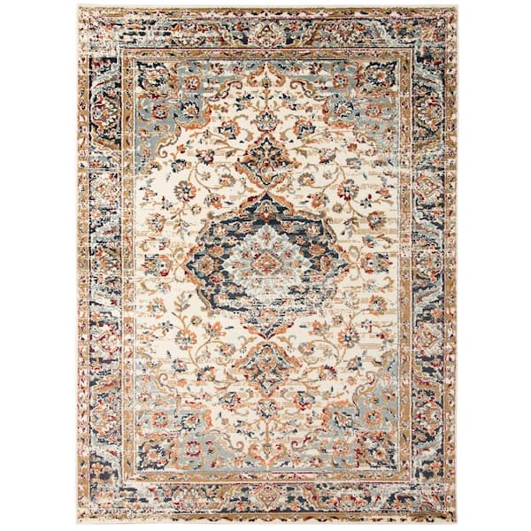 Allure 2 x 3 Ivory/Navy Blue Medallion Pattern Area Rug for High Traffic Living Room Dining Room Bedroom