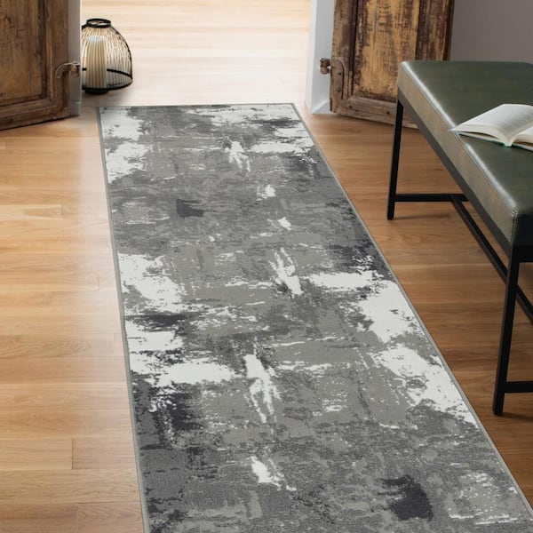 Alpine 2 ft. 7 in. x 10 ft. Ivory Abstract Pattern Runner Rug for High Traffic Entryway Kitchen Hallway