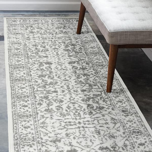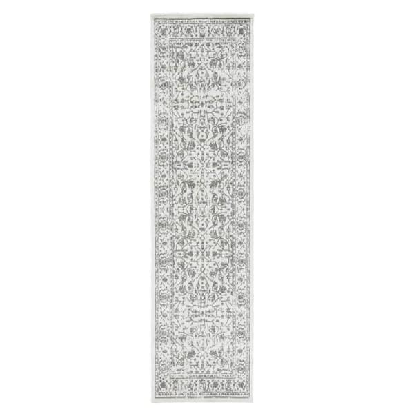 Alpine 2 ft. 7 in. x 10 ft. Light Gray Bordered Pattern Runner Rug for High Traffic Entryway Kitchen Hallway