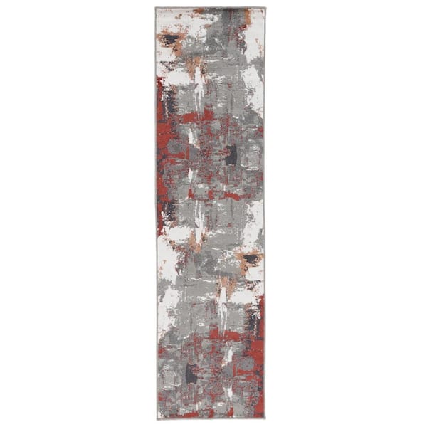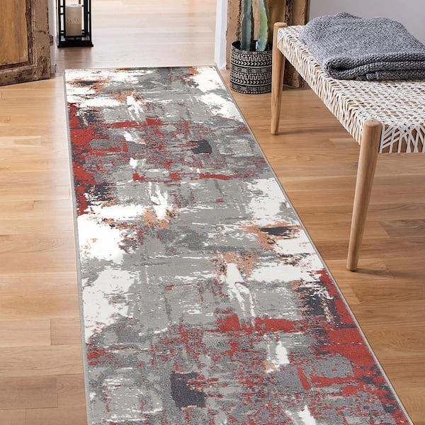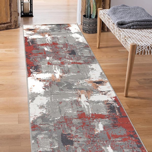 Alpine 2 ft. 7 in. x 10 ft. Rust Abstract Pattern Runner Rug for High Traffic Entryway Kitchen Hallway