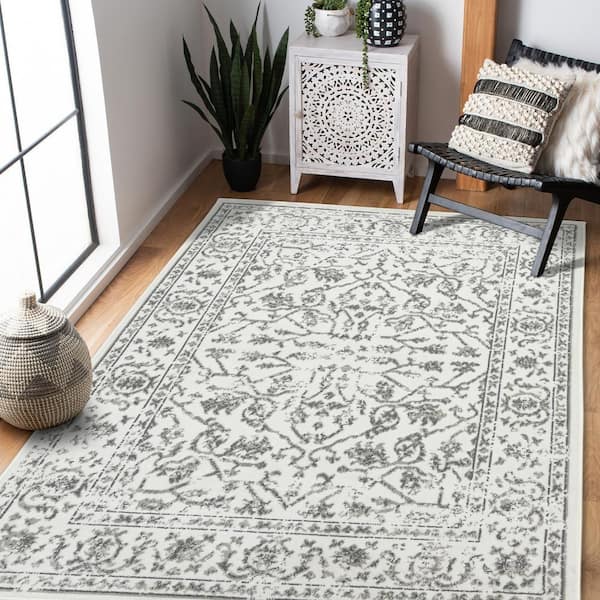 Alpine 9 x 12 Light Gray Bordered Pattern Area Rug for High Traffic Living Room Dining Room Bedroom