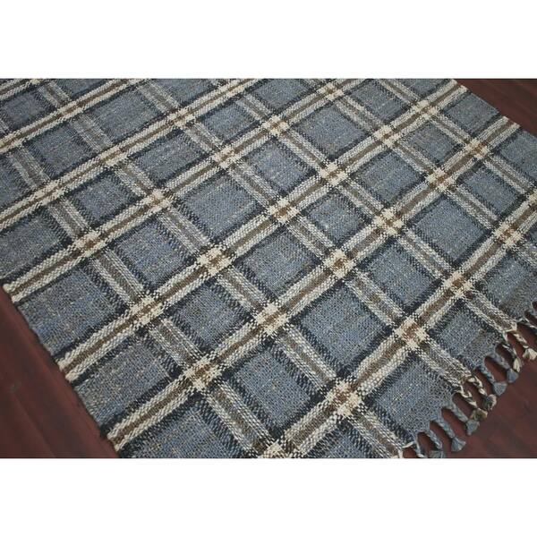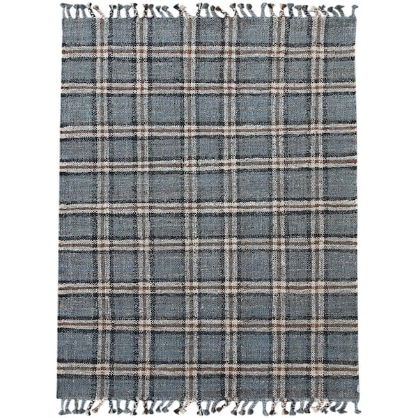 Hampton 4 x 6 Blue Plaid Pattern Area Rug for High Traffic Living Room Dining Room Bedroom