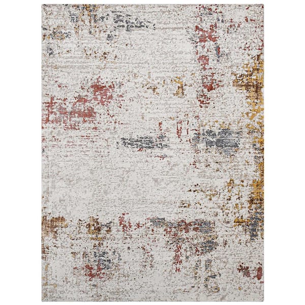 Savannah 9 x 12 Red/Ivory Abstract Pattern Area Rug for High Traffic Living Room Dining Room Bedroom