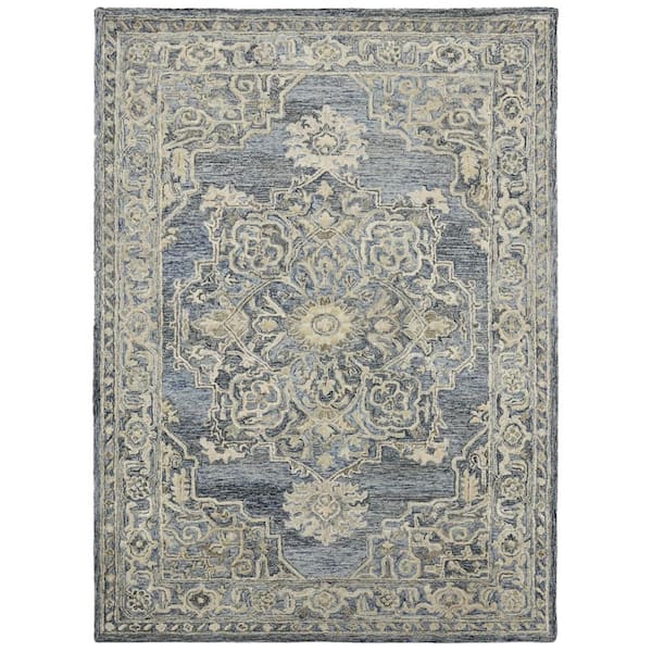 Vestige 5 x 8 Denim/Gray Oriental Pattern Area Rug for High Traffic Living Room Dining Room Bedroom