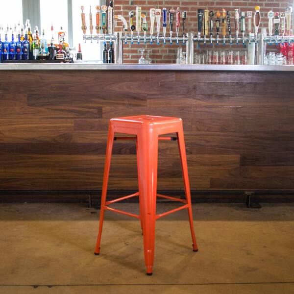 30 in. Orange Metal, Backless, Stackable Bar Stool (Set of 4)