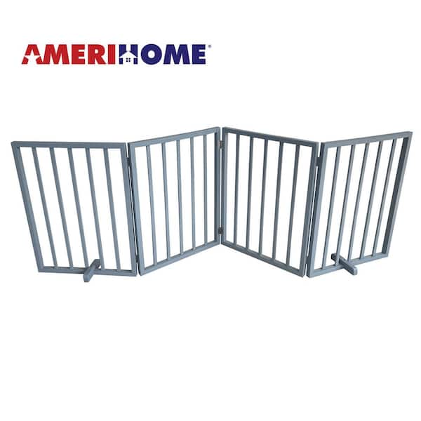 72 in. Freestanding 4-Panel Folding Wood Pet Gate - Gray
