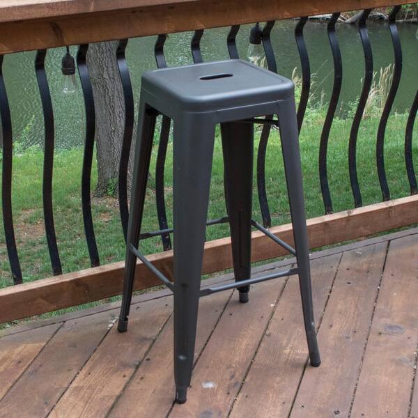 Loft Series 30 in. Indoor/Outdoor Stackable Anti-Rust Coated Metal Bar Stool in Gunmetal