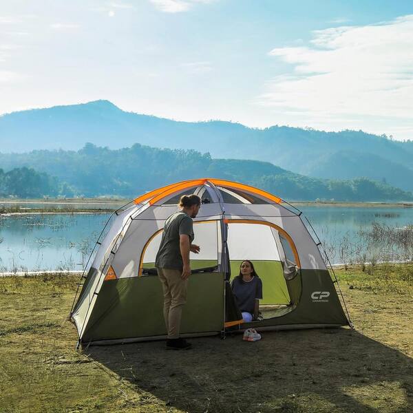 6/8-Person 11 ft. x 7 ft. Olive Pop Up Canopy, Outdoor Camping Tent W/Storage Bag and Window, Double Layer, Waterproof