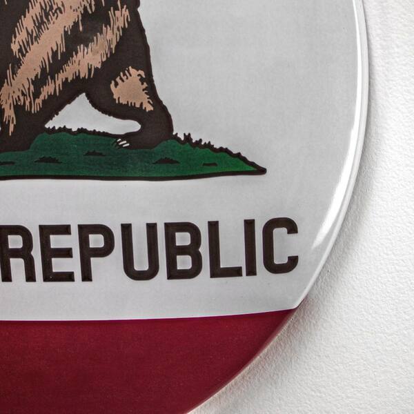 Dome Shaped Metal Wall Art Sign-Man Cave, Garage, Game Room(California Republic State Flag)White/Brown, 15" H x 15" L