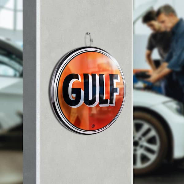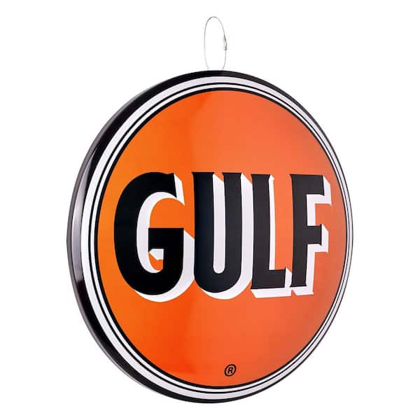 Dome Shaped Metal Wall Art Sign-Man Cave, Garage Sign, Mechanic Decor, Gas Decor (Gulf)Orange/Blue, 15" H x 15" L