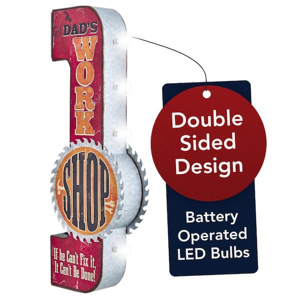 Vintage LED Iron Metal Marquee Sign Dad's Workshop If He Can't Fix it Sign, Decorative Sign, 25 in. x 7.5 in. x 3 in.