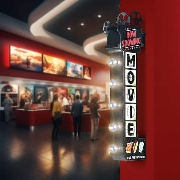 Vintage Metal LED Iron Metal Marquee Sign, Decorative Sign, Movie Sign, Cinema Room - 25 in. x 6 in. x 3 in.