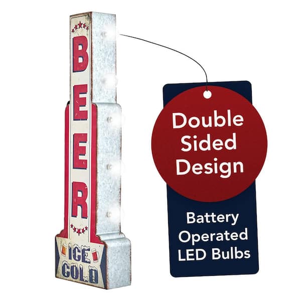 Vintage Metal LED Marquee Sign Ice Cold Beer Sign 28 in. x 9 in. x3 in.