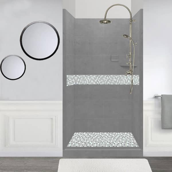 Del Mar 42 in. L x 36 in. W x 80 in. H Center Drain Alcove Shower Kit with Shower Wall and Shower Pan in Wet Cement