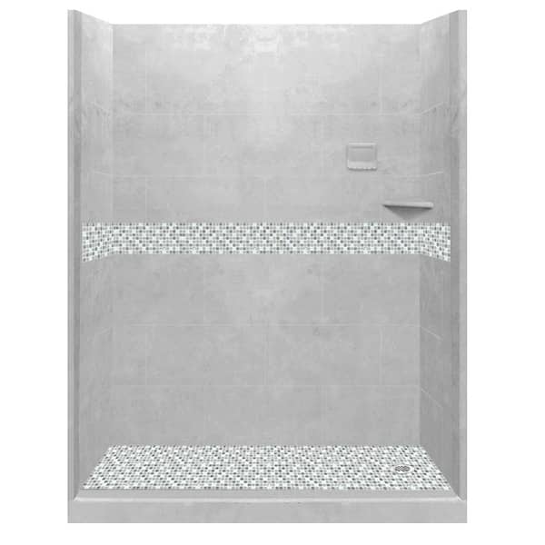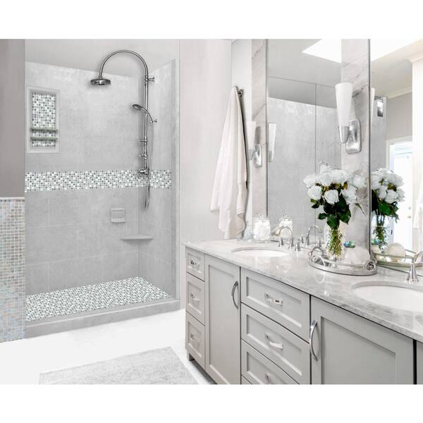 Del Mar 60 in. L x 34 in. W x 80 in. H Right Drain Alcove Shower Kit with Shower Wall and Shower Pan in Portland Cement