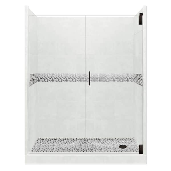 Del Mar Grand Hinged 34 in. x 60 in. x 80 in. Right Drain Alcove Shower Kit in Natural Buff and Black Pipe Hardware