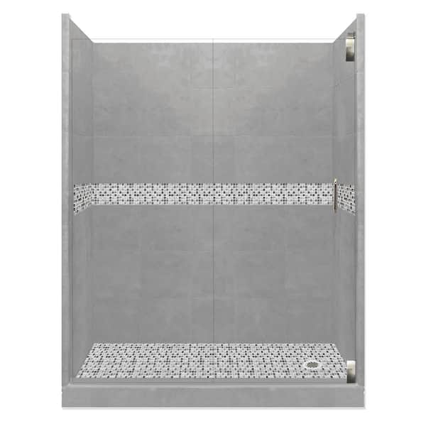Del Mar Grand Hinged 36 in. x 60 in. x 80 in. Right Drain Alcove Shower Kit in Wet Cement and Satin Nickel Hardware