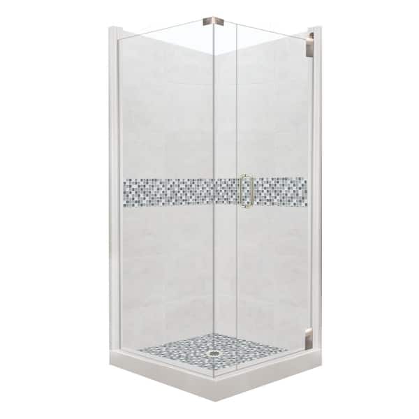 Del Mar Grand Hinged 38 in. x 38 in. x 80 in. Right-Hand Corner Shower Kit in Natural Buff and Satin Nickel