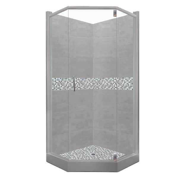 Del Mar Grand Hinged 42 in. x 48 in. x 80 in. Left-Cut Neo-Angle Shower Kit in Wet Cement and Chrome Hardware