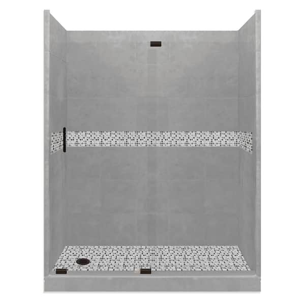 Del Mar Grand Slider 34 in. x 60 in. x 80 in. Left Drain Alcove Shower Kit in Wet Cement and Black Pipe Hardware