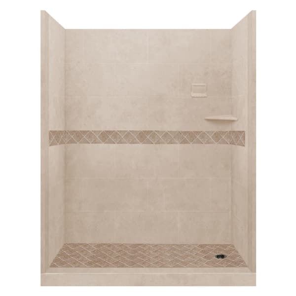 Espresso Diamond 60 in. x 32 in. x 80 in. Right Drain Alcove Shower Pan and Walls in Brown Sugar and Old Bronze Drain
