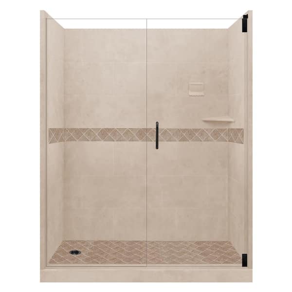 Espresso Diamond Hinged 32 in. x 60 in. x 80 in. Left Drain Alcove Shower Kit in Brown Sugar and Black Pipe Hardware