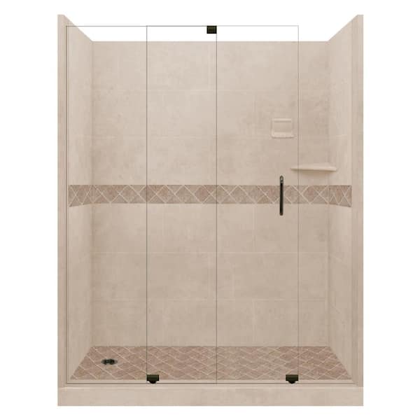 Espresso Diamond Slider 30 in. x 60 in. x 80 in. Left Drain Alcove Shower Kit in Brown Sugar and Old Bronze Hardware