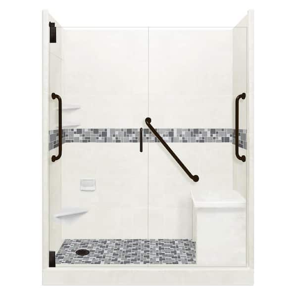 Newport Freedom Grand Hinged 34 in. x 60 in. x 80 in. Left Drain Alcove Shower Kit in Natural Buff and Black Pipe