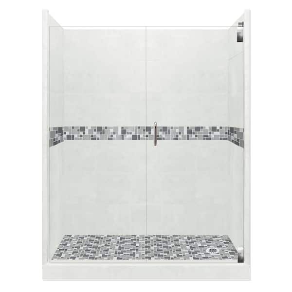 Newport Grand Hinged 30 in. x 60 in. x 80 in. Right Drain Alcove Shower Kit in Natural Buff and Chrome