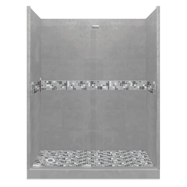 Newport Grand Slider 30 in. x 60 in. x 80 in. Left Drain Alcove Shower Kit in Wet Cement and Chrome Hardware