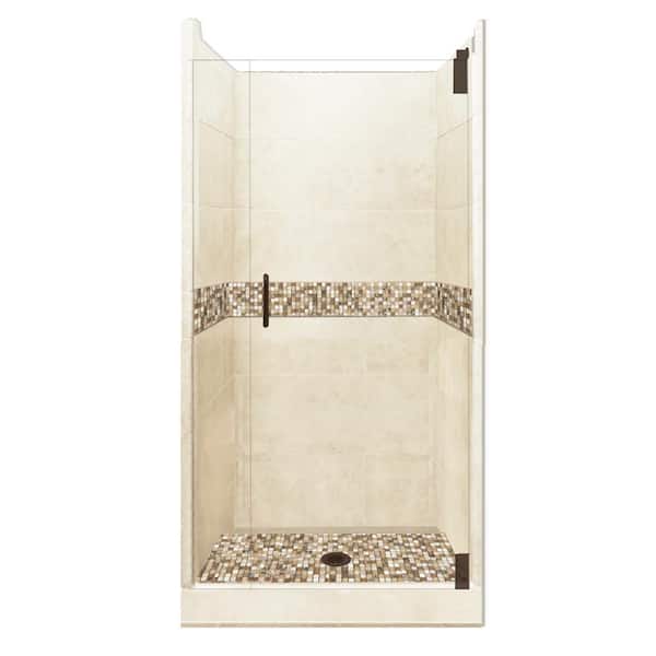 Roma Grand Hinged 36 in. x 36 in. x 80 in. Center Drain Alcove Shower Kit in Desert Sand and Old Bronze Hardware