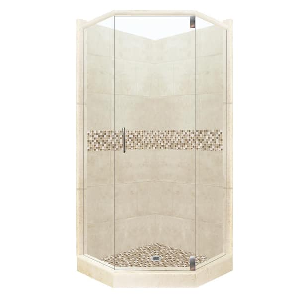 Roma Grand Hinged 36 in. x 36 in. x 80 in. Neo-Angle Shower Kit in Desert Sand and Satin Nickel Hardware