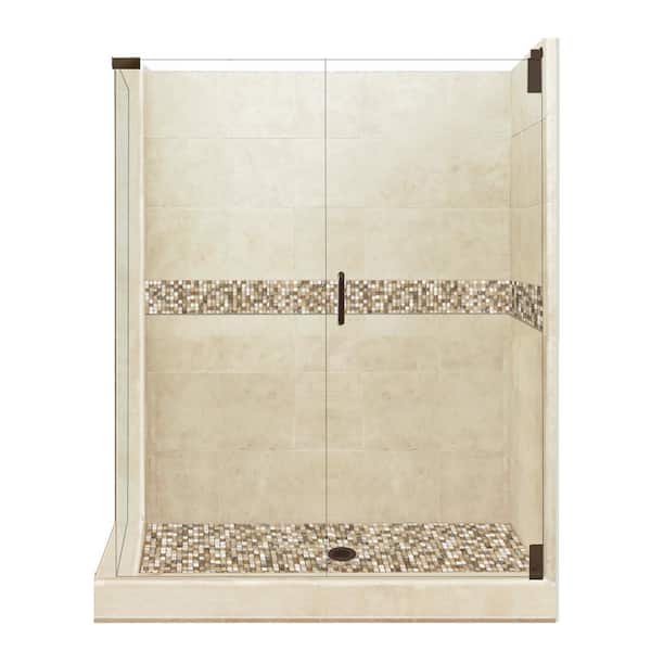 Roma Grand Hinged 36 in. x 48 in. x 80 in. Right-Hand Corner Shower Kit in Brown Sugar and Old Bronze Hardware