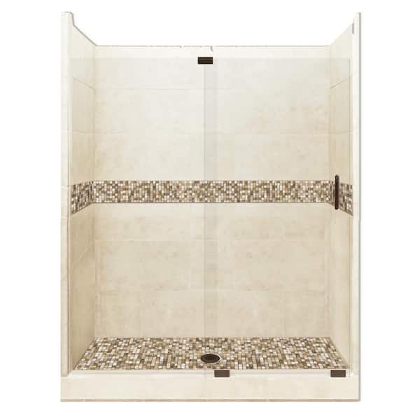 Roma Grand Slider 30 in. x 60 in. x 80 in. Center Drain Alcove Shower Kit in Desert Sand and Old Bronze Hardware