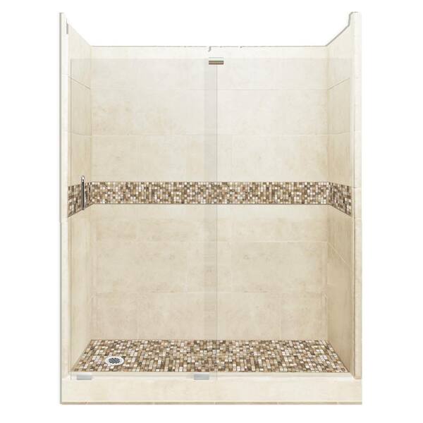 Roma Grand Slider 36 in. x 60 in. x 80 in. Left Drain Alcove Shower Kit in Desert Sand and Chrome Hardware