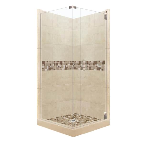 Tuscany Grand Hinged 36 in. x 36 in. x 80 in. Right-Hand Corner Shower Kit in Brown Sugar and Satin Nickel Hardware