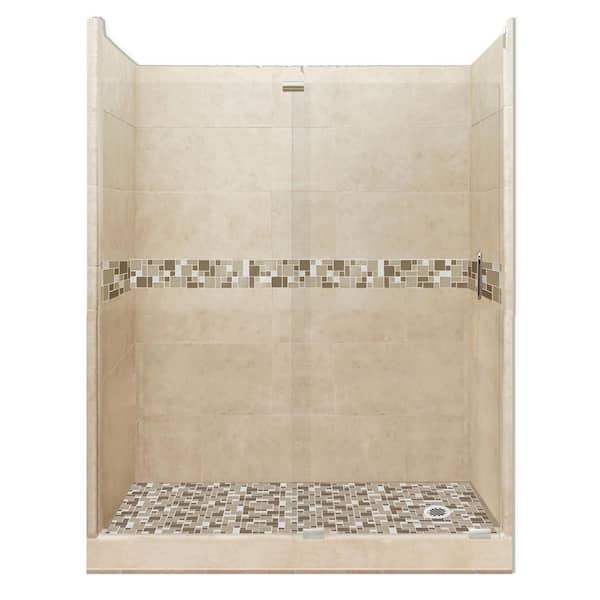 Tuscany Grand Slider 34 in. x 60 in. x 80 in. Right Drain Alcove Shower Kit in Brown Sugar and Satin Nickel Hardware