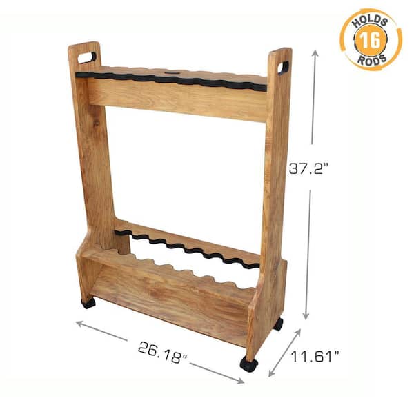 American Cherry Laminate Double Sided Rolling 16 Rod Rack