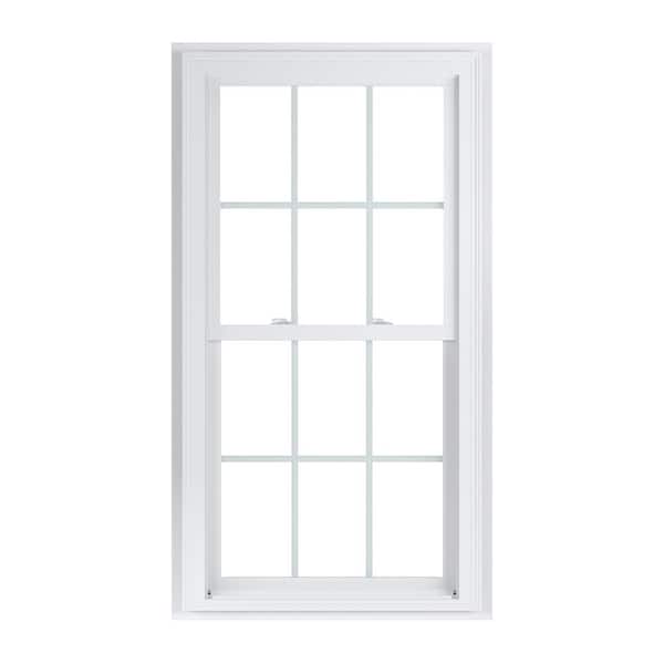 29.75 in. x 56.75 in. 70 Series White Double Hung Low-E Argon PS Glass Vinyl Fin with J Window with Grids, Screen Incl