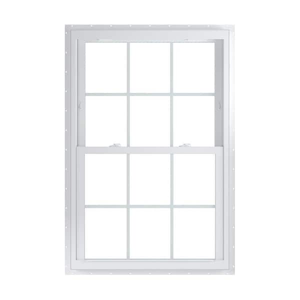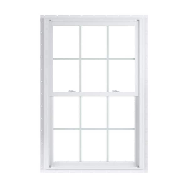 35.75 in. x 54 in. 70 Series White Double Hung Low-E Argon PS Glass Vinyl Fin Window with Grids, Screen Incl