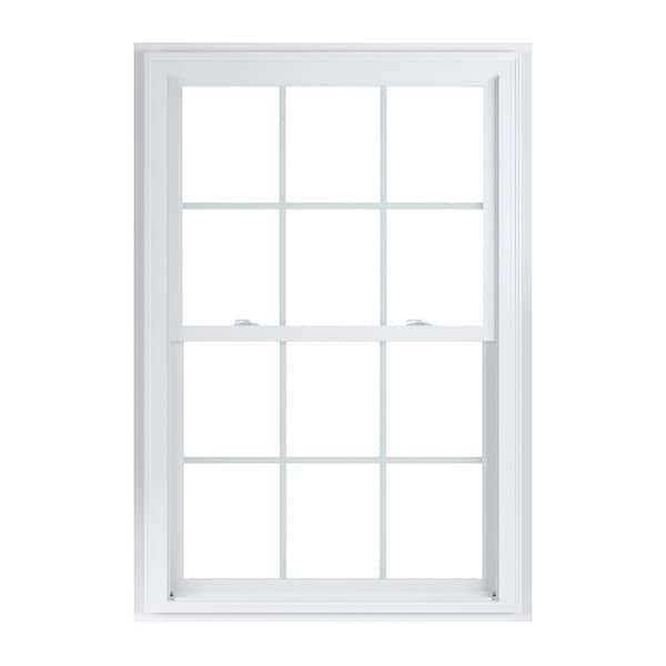 37.75 in. x 56.75 in. 70 Series White Double Hung Low-E2 Argon PS Glass Vinyl Fin with J Window with Grids, Screen Incl