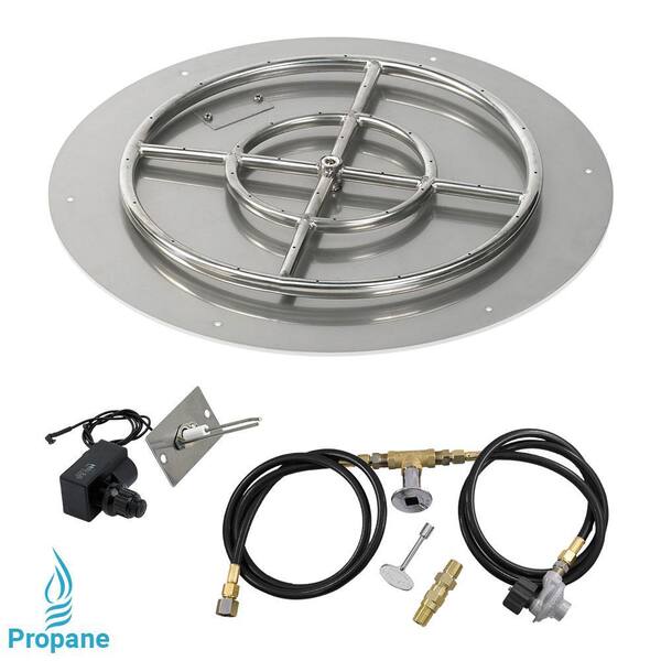 24 in. Round Stainless Steel Flat Pan with Spark Ignition Kit - Propane (18 in. Ring Burner Included)