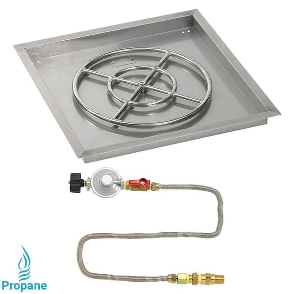24 in. sq. Stainless Steel Drop-In Pan with Match Light Kit (18 in. Fire Pit Ring) Propane