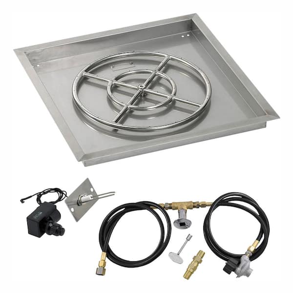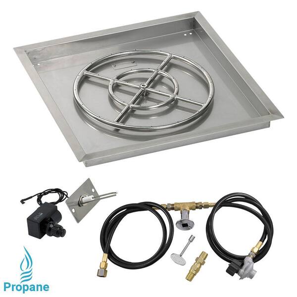 24 in. sq. Stainless Steel Drop-In Pan with Spark Ignition Kit (18 in. Fire Pit Ring) Propane