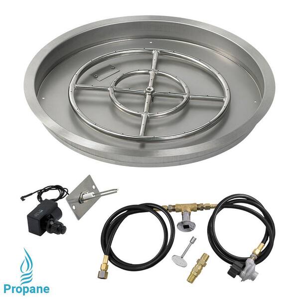 25 in. Round Stainless Steel Drop-In Fire Pit Pan with Spark Ignition Kit - Propane (18 in. Ring Burner Included)