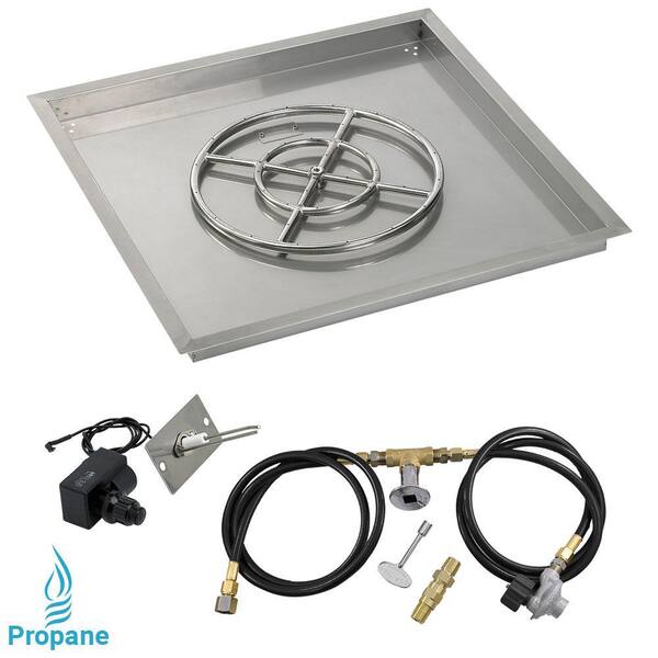 30 in. sq. Stainless Steel Drop-In Pan with Spark Ignition Kit (18 in. Fire Pit Ring) Propane