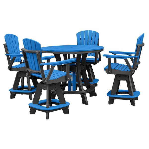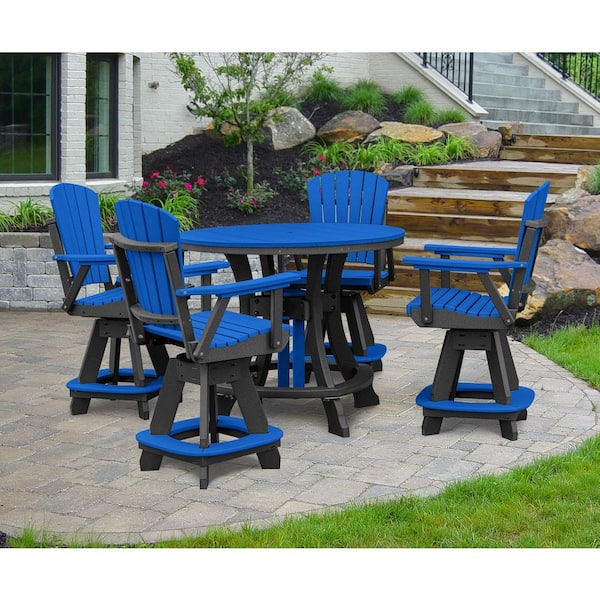 Adirondack Series Black 5 Piece Poly Resin Round Counter Height Outdoor Dining Set