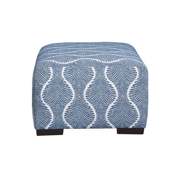 Classic Paprika Blue and White Pring Polyester Rectangular Ottoman
